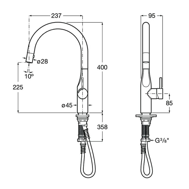 U型厨房龙头, 带抽拉喷头A5A814DC00
