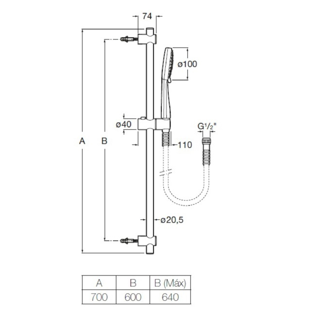 滑杆套装 100/3功能,可调节滑杆,软管A5B1H03C0N